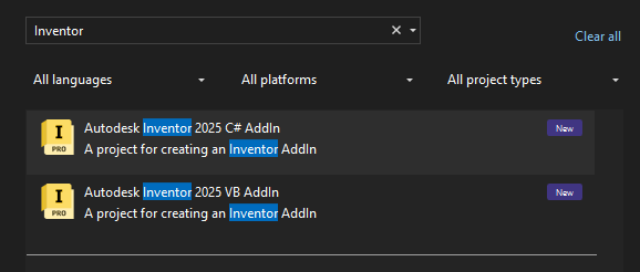Result: You’ll get a C# or VB project with a class that implements ApplicationAddInServer — the core interface for Inventor Add-Ins.