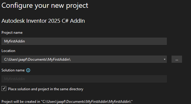 This installs the Inventor Add-In template into Visual Studio — making it easy to create your first project.